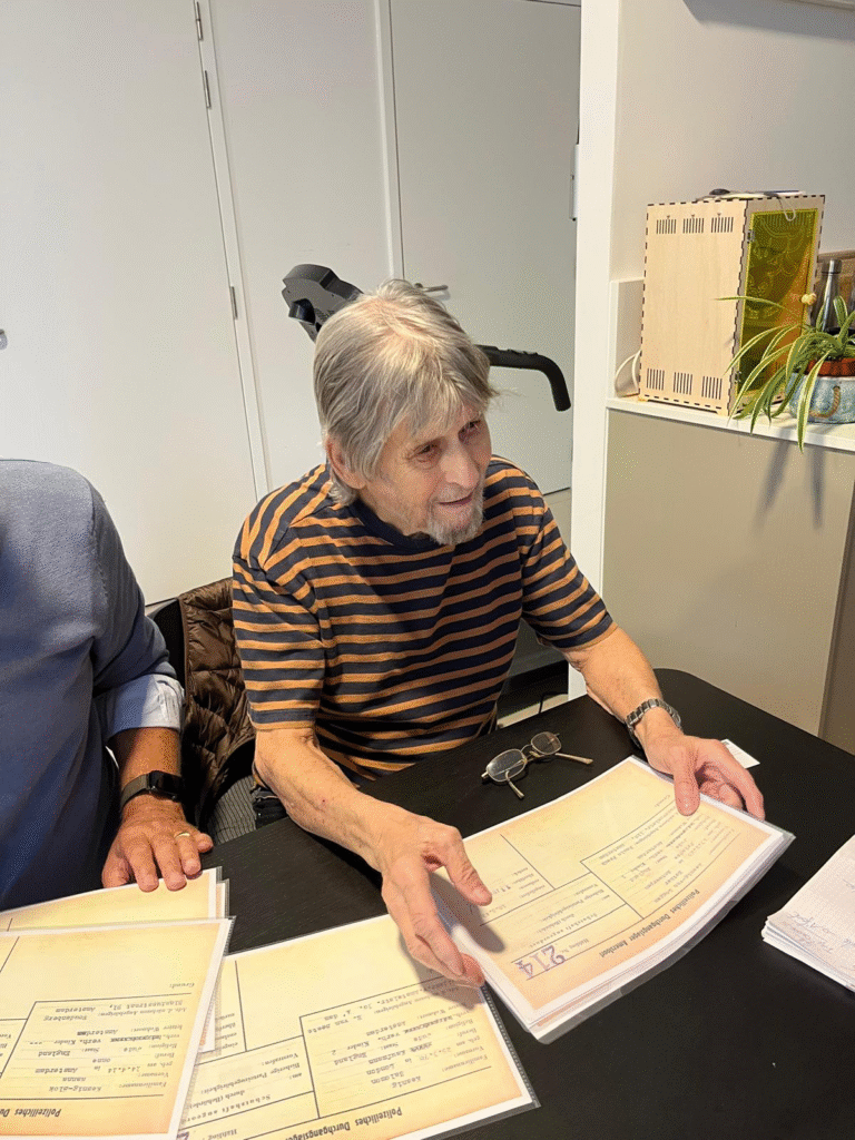 Met een omhelzing nemen wij afscheid van Raymond Kesnig. Zijn getekende leven lang heeft hij gedacht dat hij geboren was in Kamp Westerbork, maar kent nu mede door getoonde archiefstukken de waarheid. In de familie luidde decennialang het credo: “Zeg niet dat je Jood bent want straks komen de nazi’s terug.” Via Inge vult Raymond aan: “Joden zullen altijd blijven lijden.”